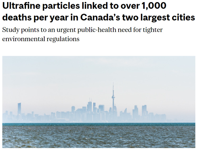 更令人担忧的是,尽管加拿大政府对较大颗粒物PM2.5(直径为2.5微米或更小)设定了浓度限制,但尚未对UFPs进行任何管控。这使得这种“隐形杀手”在监管的空隙中肆无忌惮。