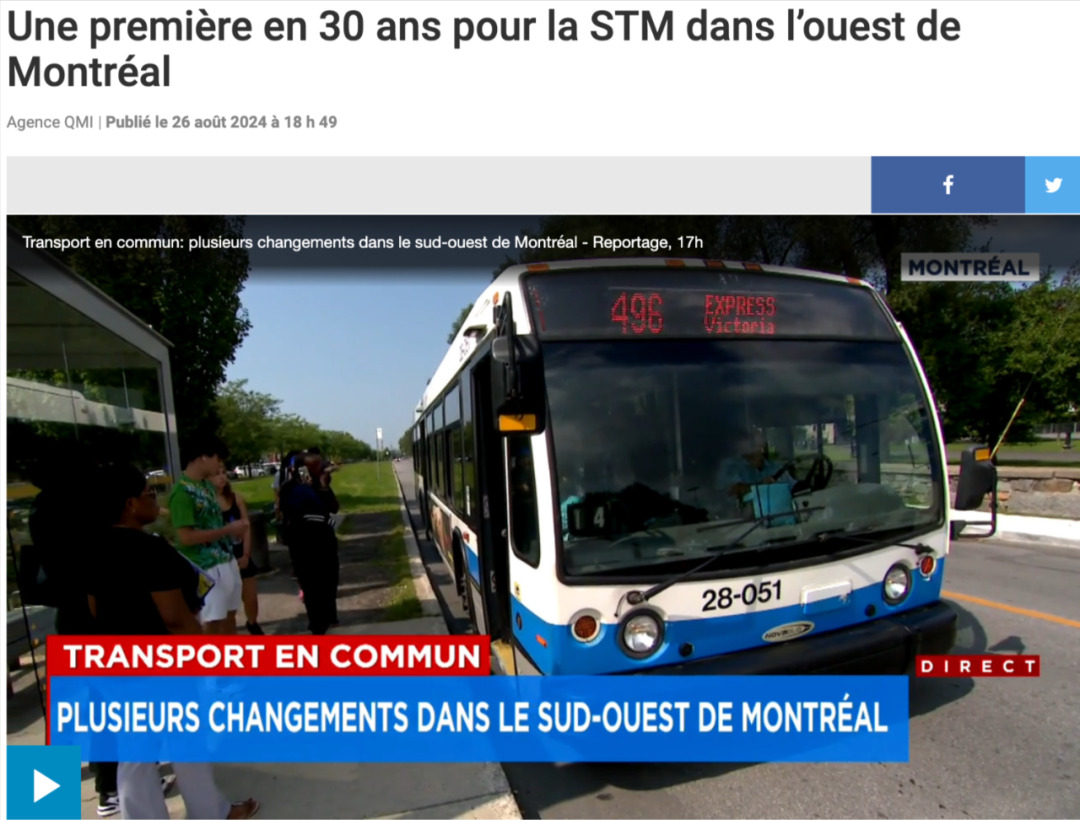 此次调整由蒙特利尔公交公司(STM)实施,涉及岛上西南区的多条公交线路,变更自8月26日(周一)开始生效。