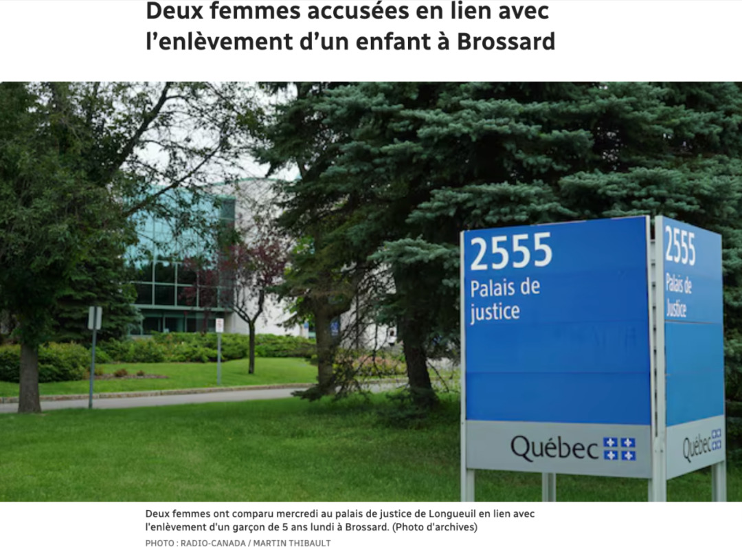 在8月26日周一晚间,一名5岁的华裔男童在蒙特利尔南岸的Brossard遭到绑架。第二天凌晨,魁北克省警方发出了安珀警报(Amber Alert),并逮捕了两名女子,目前她们正面临三项刑事指控。