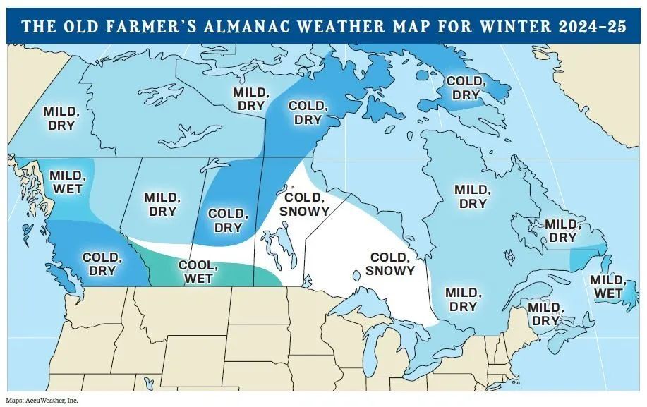 《老农年鉴》的编辑Carol Connare表示:“冬季极端寒冷和强降雪将主要集中在北方和曼尼托巴的东部,而全国其他大部分地区则将充分铲雪和极低温的压力。”