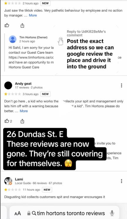 网友们纷纷留言:“我已经有很久不去Tim Hortons了,现在更是再也不会去了!”“这太疯狂了!”“赶快报警!”