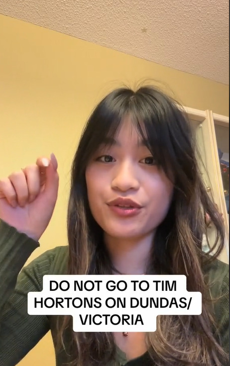 Hoang表示,此事件发生在8月22日下午6:40左右。当时,她在位于Dundas和Victoria的Tim Hortons点了咖啡,