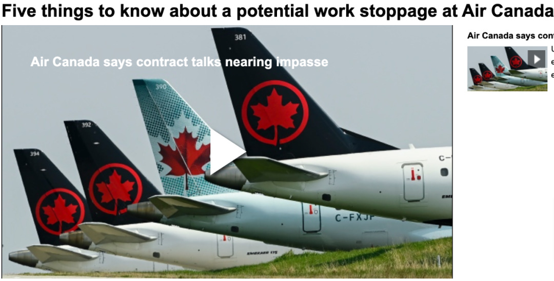 今日周一,加拿大最大航空公司加拿大航空(Air Canada)表示,因与飞行员工会的合同谈判接近僵局,计划自本周日开始逐步暂停大部分航空运营。