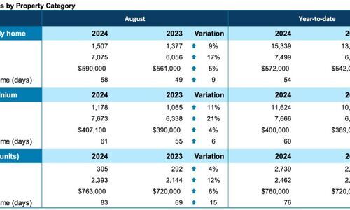该协会指出,8月份大税收地区销售出的住宅总数为2,991套,而2023年同月为2,737套。
