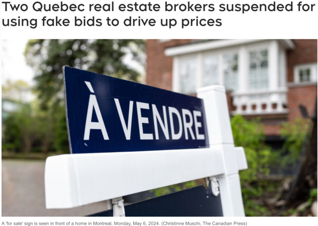 在新冠疫情期间,魁北克省的两位房地产经纪人因暗示的房价报价而提高房价并威胁罚款和长时间的停职。