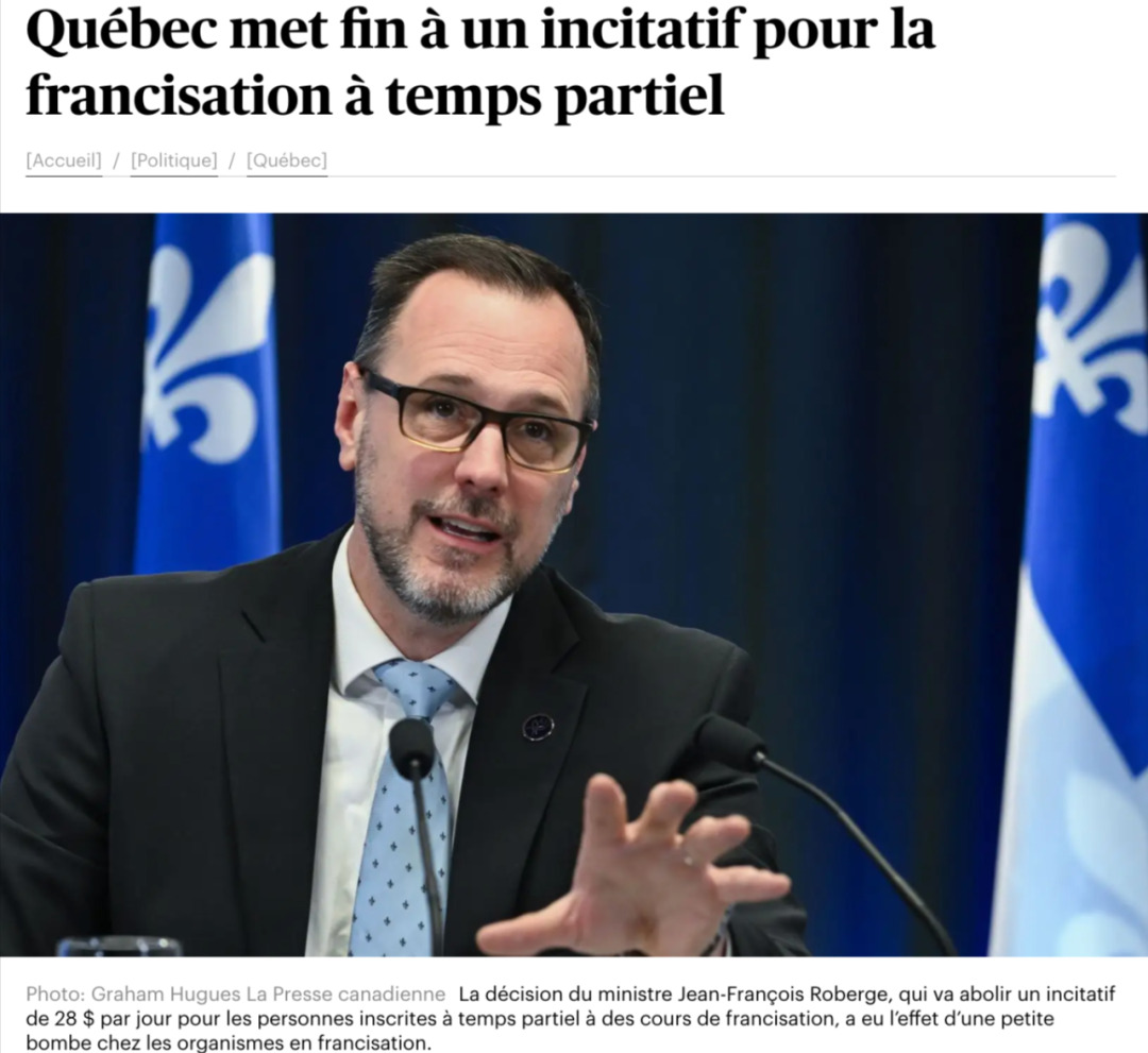 据《Le Devoir》报道,魁省François Legault政府计划在9月底停止对非全日制(temps partiel)法语课程的经济补助。