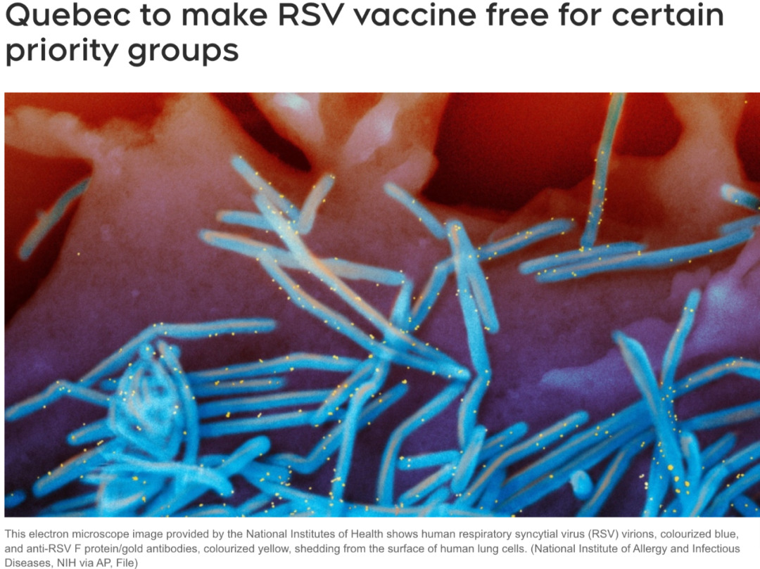 魁北克省政府于周五宣布,将于今秋为特定优先群体提供免费的呼吸道合胞病毒(RSV)疫苗。
