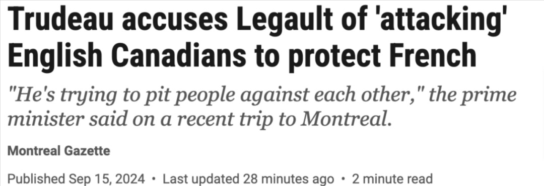 加拿大总理特鲁多在最近访问期间,批评了魁北克省省长弗朗索瓦·莱戈攻击英裔加拿大人,并引发了社区之间的对立。