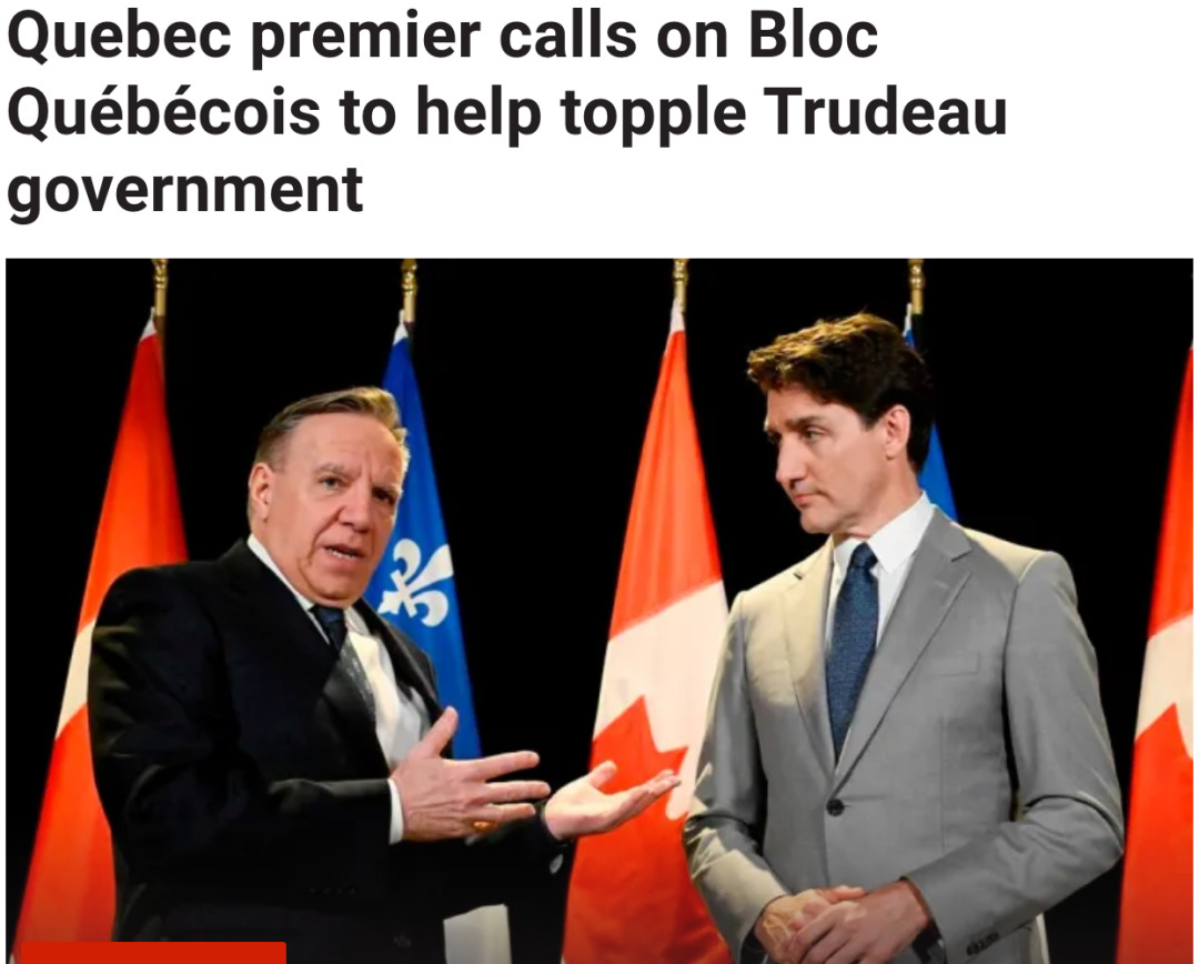 魁北克省省长François Legault表示,魁人政团(Bloc Québécois)需要在下周投票推翻联邦自由党政府,并引发大选。