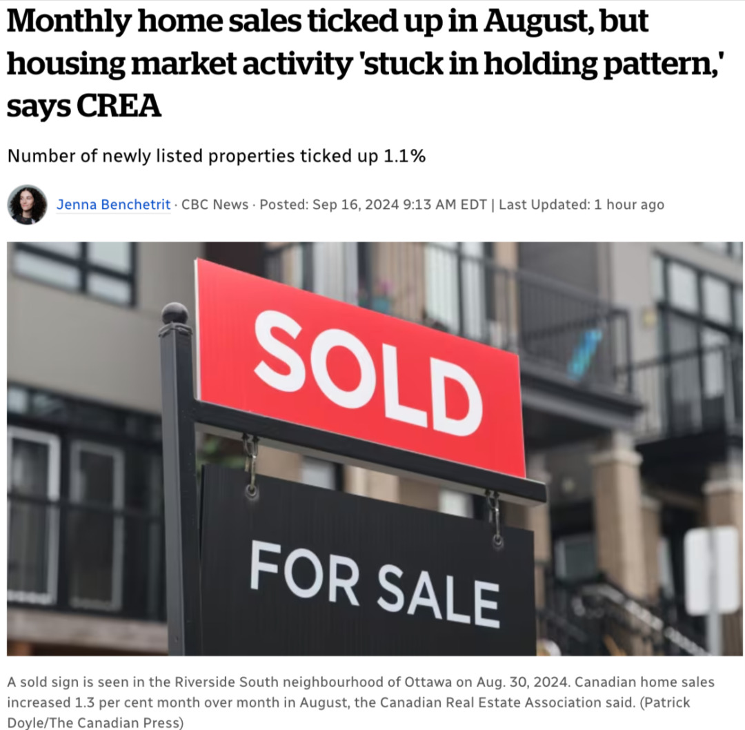 加拿大房地产协会(Canadian Real Estate Association)在周一发布的报告中指出,8月份加拿大的房屋销售环比增加了1.3%,但与去年同期相比,销售活动下降了2.1%。 该协会进一步提到,加拿大央行在7月结束的两次降息为房地产市场带来了温和的积极影响,但整体环境显示,购房者在决定入市之前仍在等待更低的利率。