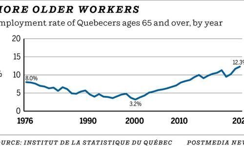 魁北克省统计研究所(Institut de la statistique du Québec)于本周二发布了最新的《人口老龄化与老年人统计展示》,报告显示,魁北克省65岁及以上的劳动者比例在过去20年内增长了五倍。