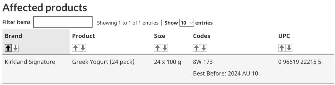 在9月初,Kirkland Signature品牌的24个100克装希腊酸奶由于发霉而进行了召回。