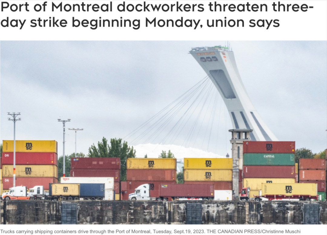 本周初,蒙特利尔港口的1150名码头工人以99.63%的投票反对率,拒绝了海事雇主协会的最新提案,并获得了罢工的授权。此外,隶属于加拿大公共雇员工会(Canadian Union of Public Employees)的地方工会即将召开新闻发布会,以通报谈判的最新进展。