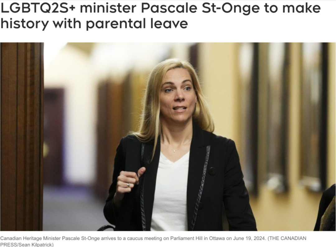 加拿大遗产部长Pascale St-Onge即将在成为历史上首位选择休育儿假的公开女同性恋内阁成员,她的配偶预计将在未来几周生下他们的孩子。