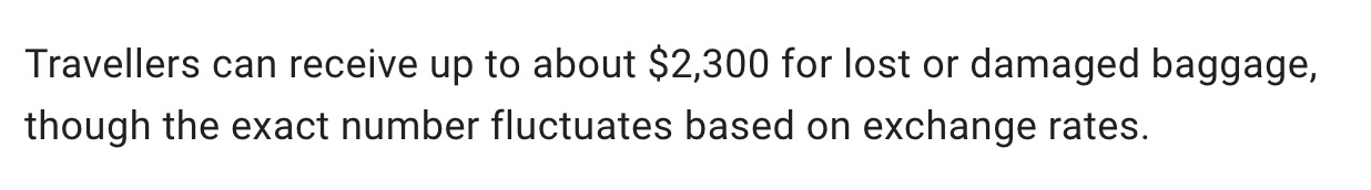 对丢失或损坏的行李,旅客有望获得约2300加元的赔偿,但具体金额会因汇率变动而有所不同。