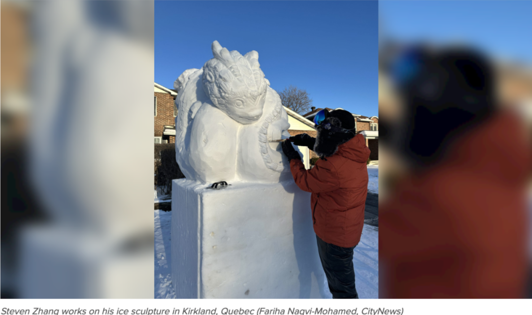 从2020年开始,每到农历新年,位于蒙特利尔西岛Kirkland的华人居民Steven Zhang都会制作一些精美的雪雕作品,以此庆祝中国文化。今年也没有例外。