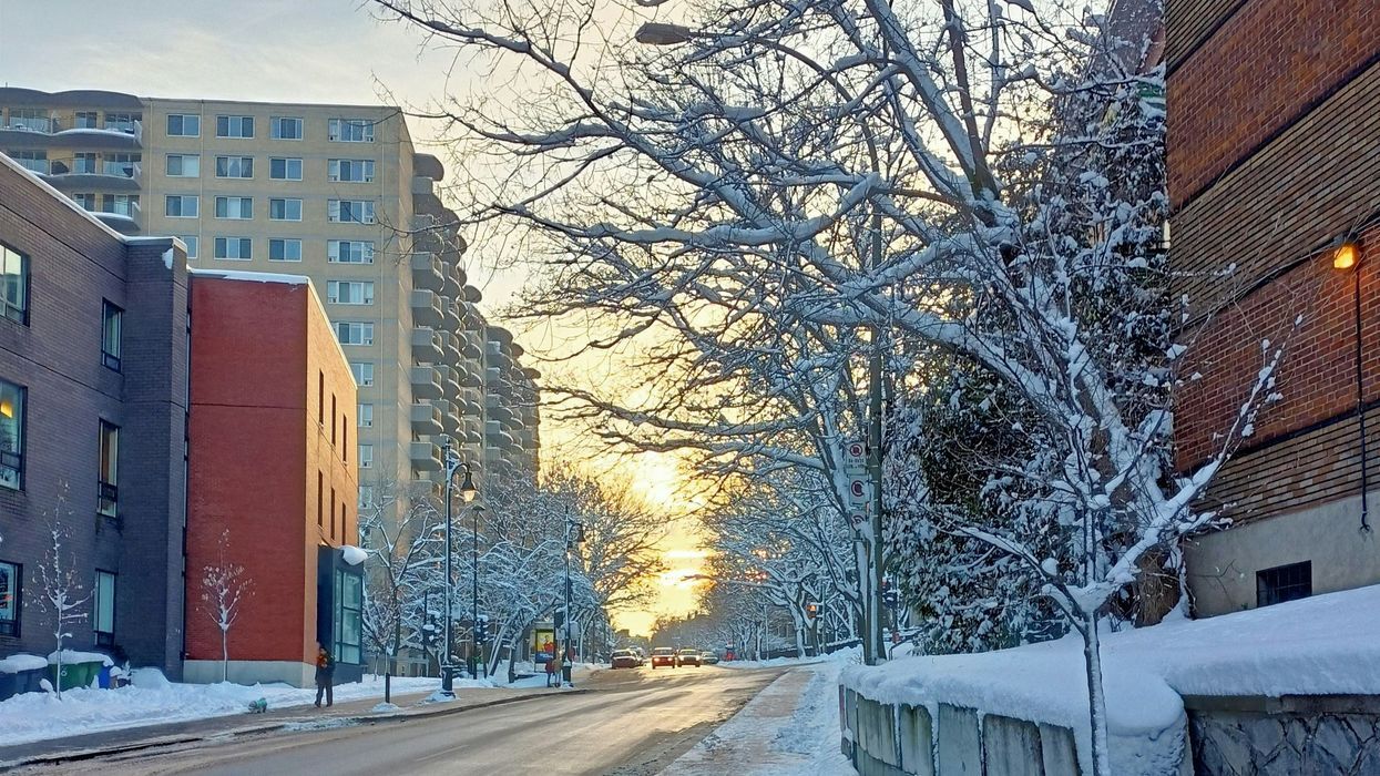 蒙特利尔街头被雪覆盖的树木展现出初冬的景象。